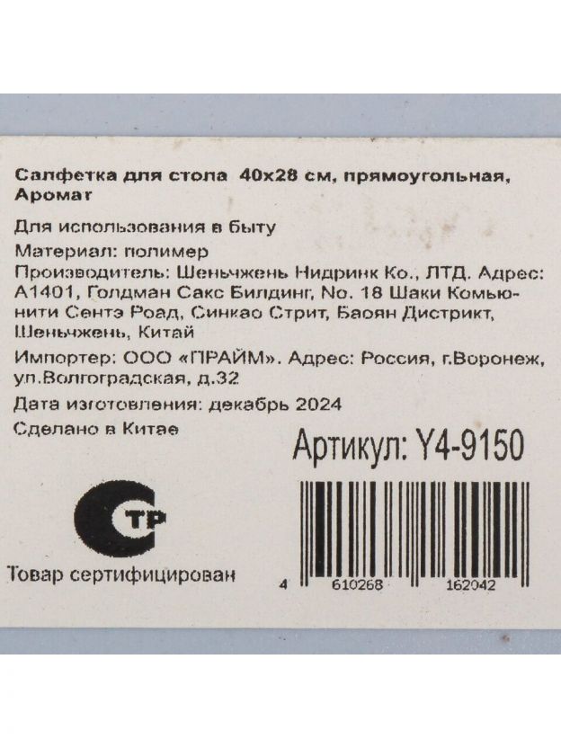 Салфетка для стола пластик, 40х28 см, прямоугольная, Аромат, Y4-9150