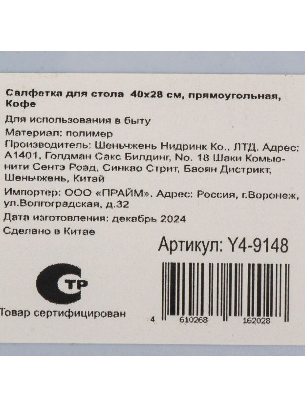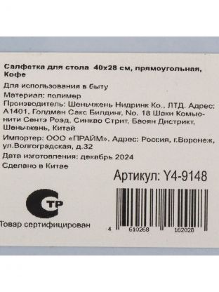 Салфетка для стола пластик, 40х28 см, прямоугольная, Кофе, Y4-9148