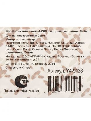 Практичная салфетка для стола из полимера 45х30 см — стильное решение для сервировки и защиты поверхности. Модель "Сеть" в коричневом цвете гармонично впишется в интерьер кухни или столовой, подчеркнет уют и современность пространства. Прямоугольная форма удобна для ежедневного использования дома или на даче.