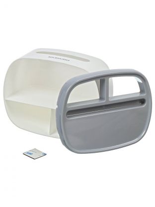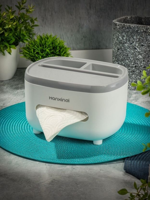 Салфетница изготовлена из высококачественного пластика, который обеспечивает прочность и долговечность изделия. Ее серо-белый цвет легко сочетается с любым интерьером, добавляя нотку элегантности и стиля. С помощью этой салфетницы вы сможете держать салфетки всегда в порядке и готовыми к использованию.