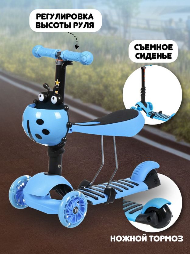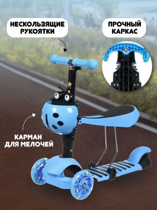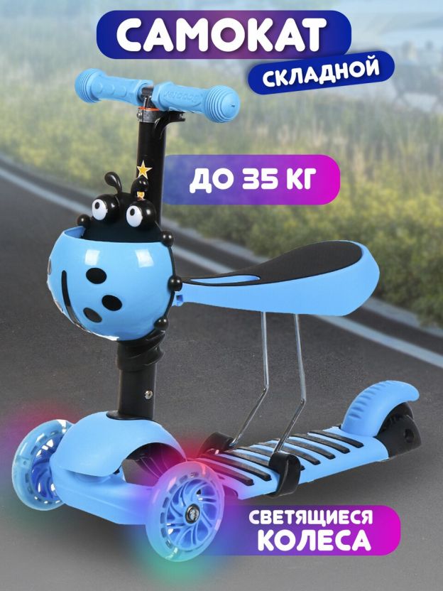 Самокат трехколесный, детский, складной, 35 кг, металл, пластик, с сиденьем, T2022-514B