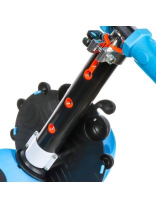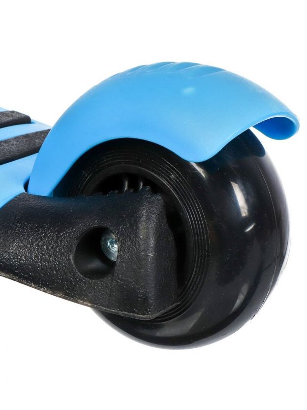 Удобные грипсы на руле предотвращают соскальзывание рук. Остановка легко осуществляется с помощью ножного тормоза. Самокат имеет складную конструкцию, которая не занимает много места при хранении.