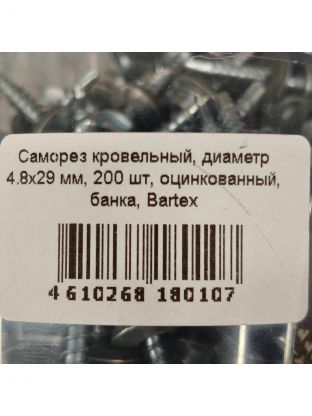 Саморез кровельный, диаметр 4.8х29 мм, 200 шт, оцинкованный, банка, Bartex