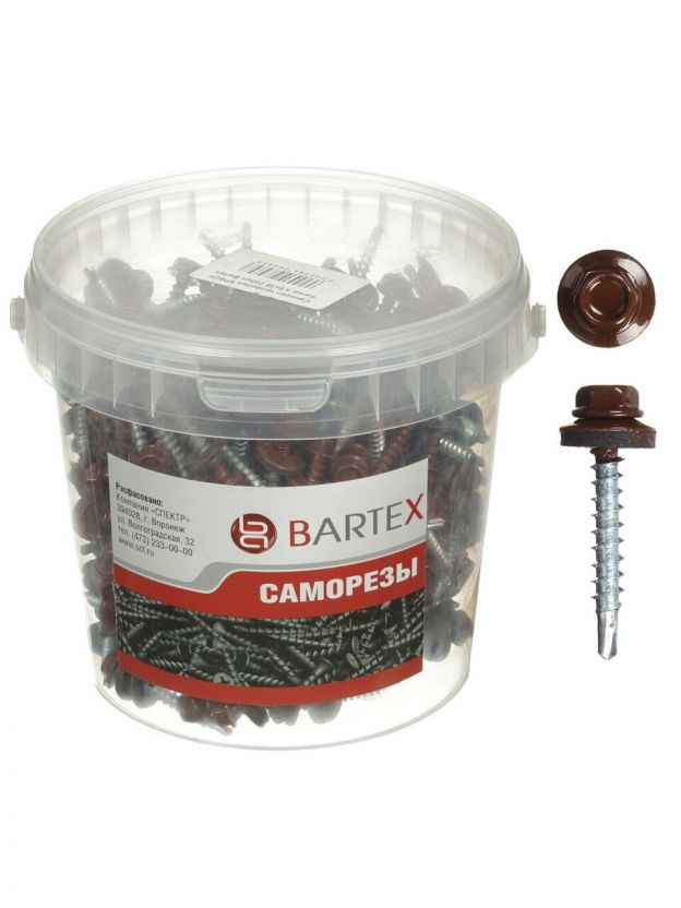 Саморез кровельный, диаметр 4.8х38 мм, 250 шт, шоколадно-коричневый, банка, Bartex