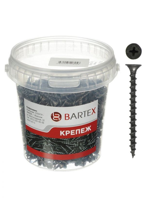 Саморезы Bartex предназначены для крепления гипсокартонных плит к деревянным основаниям. Стержень с редкой и крупной резьбой позволяет саморезу легко входить в древесину. Благодаря потайной головке изделие не выступает над поверхностью. Крестообразный шлиц дает возможность проводить работу отверткой или шуруповертом. Монтаж может производиться с предварительным высверливанием отверстий под саморез или без него.