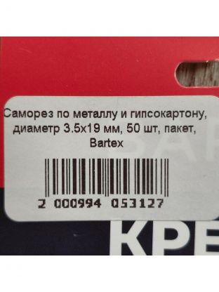 Саморез по металлу и гипсокартону, диаметр 3.5х19 мм, 50 шт, пакет, Bartex
