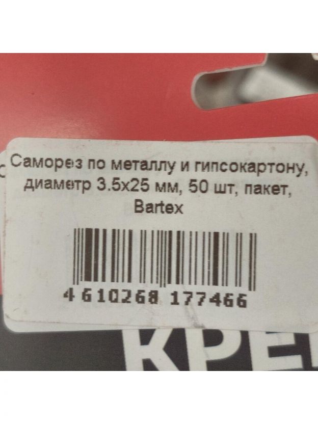 Саморез по металлу и гипсокартону, диаметр 3.5х25 мм, 50 шт, пакет, Bartex