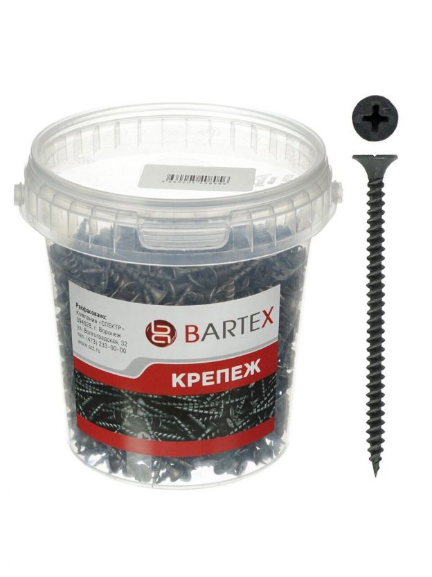 Саморезы Bartex по металлу и гипсокартону обеспечат идеальный внешний вид соединяемой конструкции. С ними Вы можете быть уверены в качестве проведенных ремонтных работ: крепление не ослабнет и не проржавеет даже спустя годы.