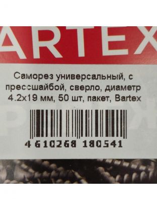 Саморез универсальный, с прессшайбой, сверло, диаметр 4.2х19 мм, 50 шт, пакет, Bartex