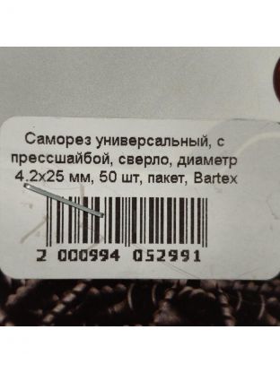 Саморез универсальный, с прессшайбой, сверло, диаметр 4.2х25 мм, 50 шт, пакет, Bartex