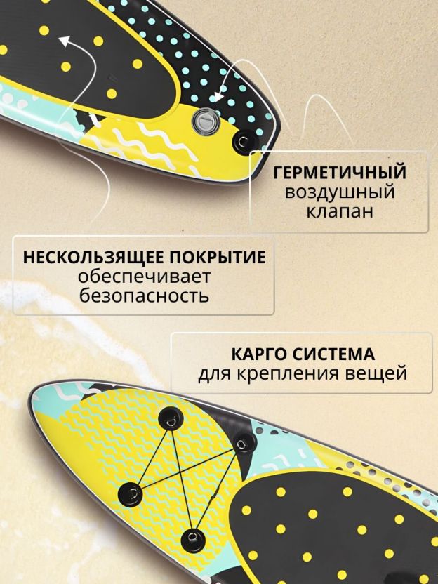 Откройте для себя увлекательный мир водных приключений с надувным сапбордом размером 330х81х15 см! Этот универсальный сап борд идеально подходит как для новичков, так и для опытных райдеров, стремящихся насладиться йогой на воде или спокойными прогулками. Яркий желтый цвет добавит заряд энергии и выделит вас на фоне водной глади.