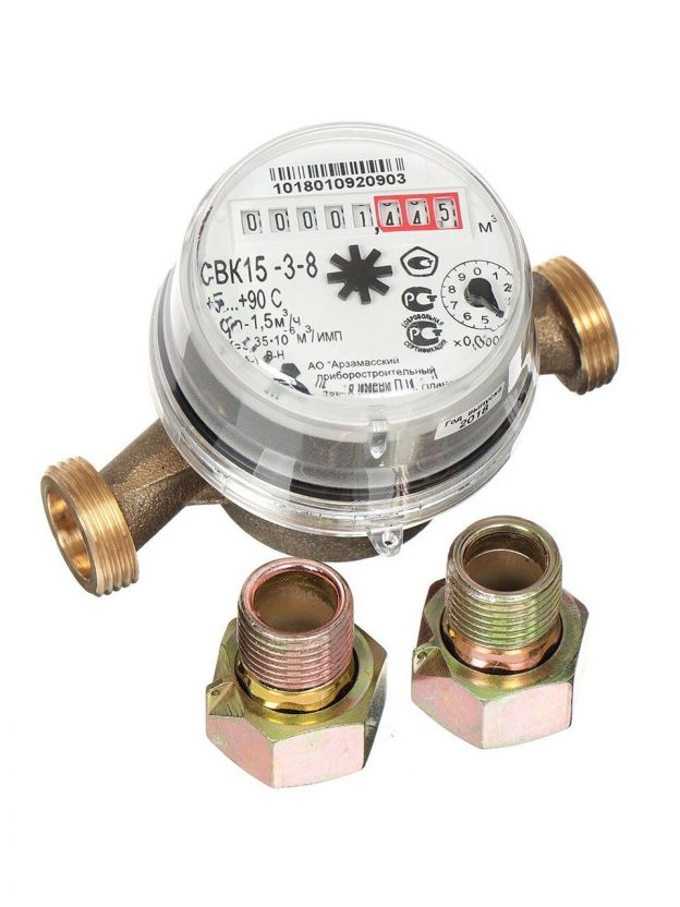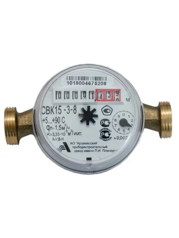 Счетчик воды универсальный, 1/2 '', с монтажным комплектом, 6 лет, Арзамасский приборостроительный завод, СВК15-3-8 Арзамас