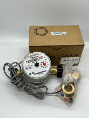 Счетчик воды универсальный, 1/2 '', с монтажным комплектом, обратный клапан, 5 лет, Dux, СВ 15-110+