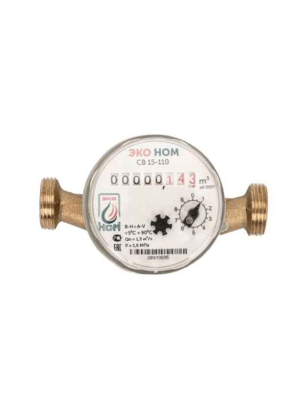 Счетчик воды универсальный ЭКО НОМ-15-110 предназначен для измерения расхода воды, отвечающий СанПин 2.1.4.1074-01. Возможность горизонтального и вертикального монтажа. Корпус из латуни выдерживает влажные условия в любых услвоиях. Устойчивость к повышенному давлению в системе водоснабжения. Устойчивость к повышенной температуре, выдерживает перегретую воду. Высокий ресурс (до 12 лет). Стабильные метрологические показатели. Лучшая антимагнитная защита. Не требуется соблюдения прямых участков до и после прибора. Улучшенные потребительские свойства: бесшумность хода, удобство считывания показаний.
