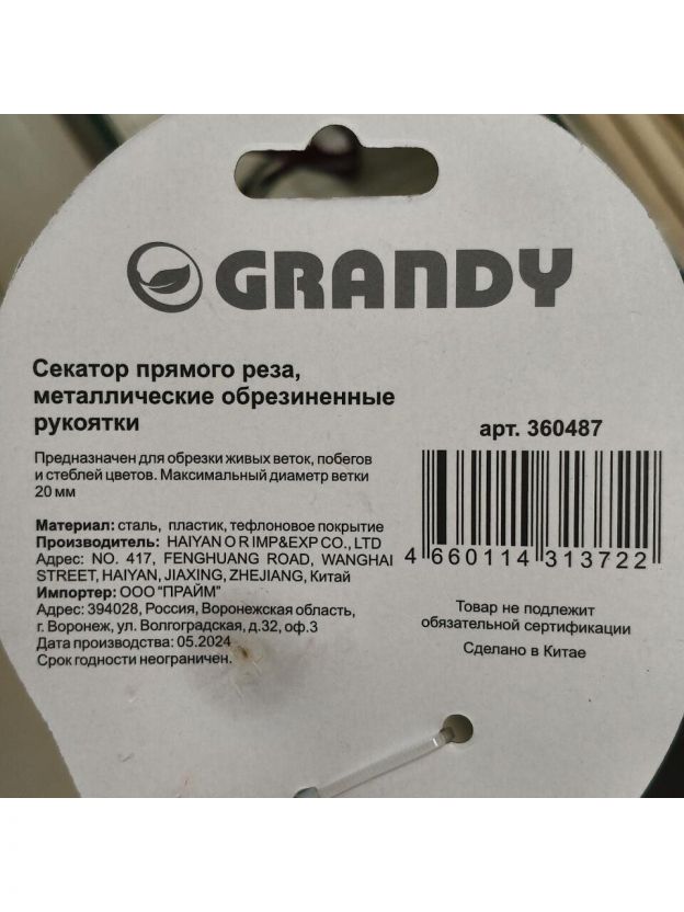 Выбирайте секатор Grandy 200 мм, чтобы купить недорого инструмент для дачи с гарантией долговечности и удобства. Оформите заказ сейчас и получите быструю доставку по выгодной цене.
