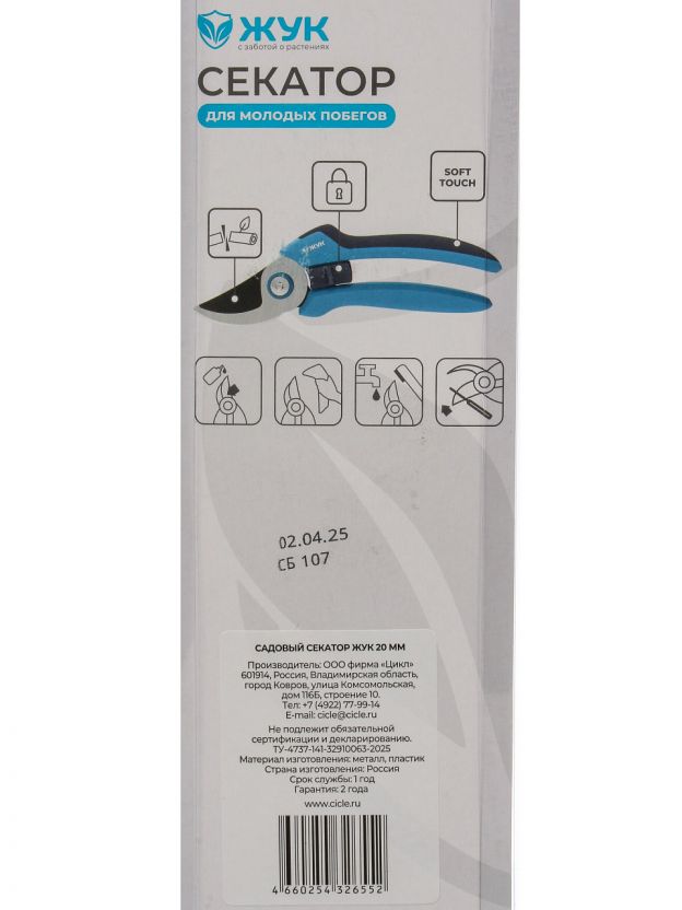 Как использовать секатор Жук? Просто зафиксируйте ветку диаметром до 20 мм между лезвиями и плавно сожмите рукоятки — даже плотные сучки режутся легко благодаря рычажному механизму. Подходит ли для женских рук? Да, длина и форма рукоятки адаптированы для любой ладони, инструмент лёгкий и не требует чрезмерных усилий. Для подарка садоводу — практичный и универсальный выбор.