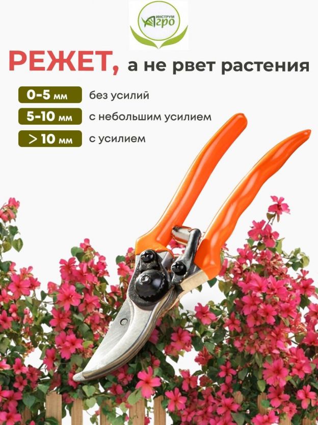 Секатор для срезки цветов, веток, молодых побегов, 200 мм, Инструм-Агро, Цветочный, 010108