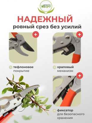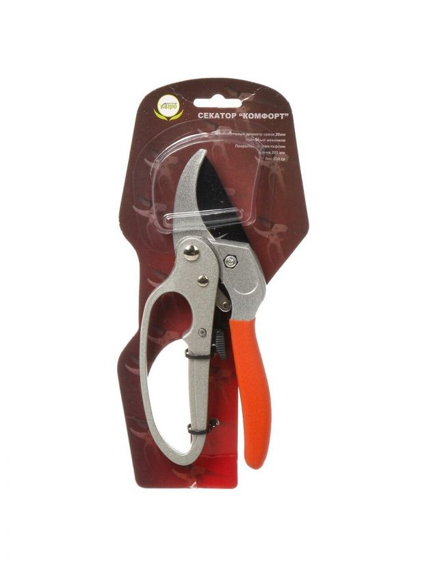 Секатор для срезки цветов, веток, молодых побегов, 205 мм, Инструм-Агро, Комфорт, с храповым механизмом, 010129