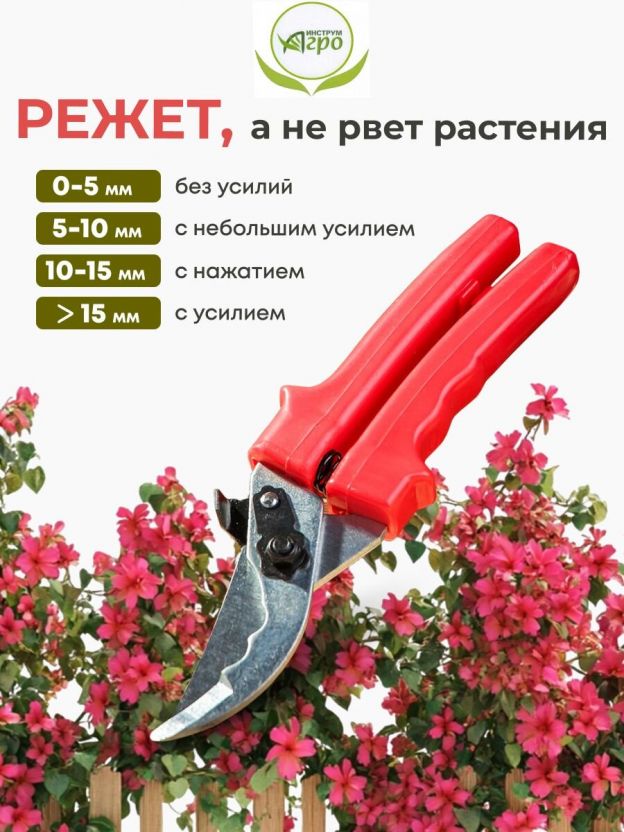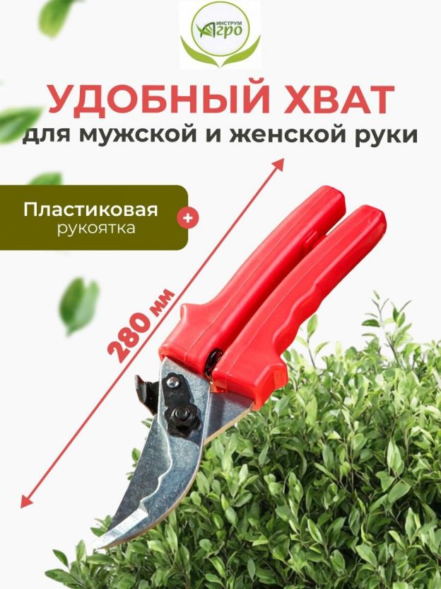 Секатор для весенней и осенней обрезки деревьев, 280 мм, Инструм-Агро, СУ, рукоятка резина, 010110-1