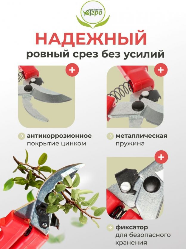 - Наличие фиксатора позволяет хранить секатор в сложенном состоянии, не боясь пораниться