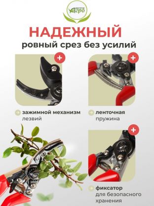 Секатор универсальный, 210 мм, с зажимным устройством, Инструм-Агро, Аллигатор, 010153