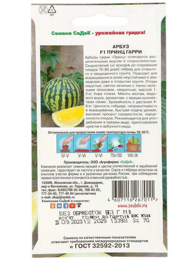 Семена арбуза Принц Гарри F1 от Седек: быстрый урожай сочных ягод для дачи и дома — выберите лучшее для сладкого лета.