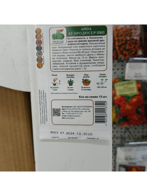 Устойчивость к болезням - одна из причин высокой урожайности сорта. Среднеспелый сорт. Улучшенный сорт известного сортотипа Кримсон Свит. Период от полных всходов до первого сбора плодов 70-75 дней. Плод овальной формы, светло-зелёного цвета с тёмными полосами. Масса 10-13 кг. Мякоть ярко-красная, сладкая. Вкус отличный. Транспортабельный.