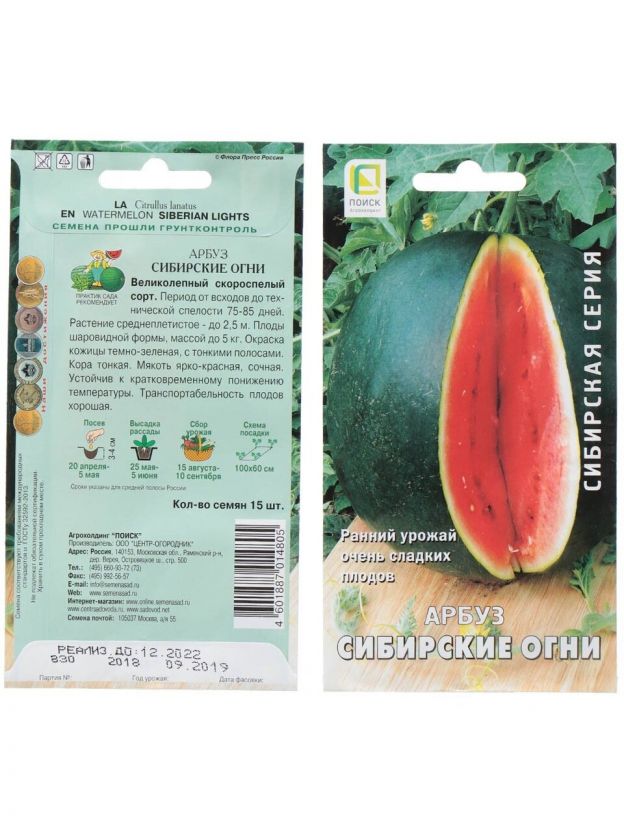 Семена Арбуз, Сибирские огни, Сибирская, цветная упаковка, Поиск