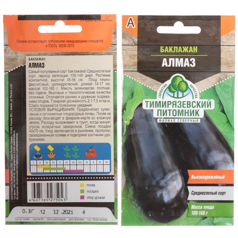 Откройте для себя богатство вкуса с семенами баклажана "Алмаз" от Тимирязевского питомника. Эти семена в цветной упаковке идеально подходят для выращивания в вашем огороде, добавляя изысканности и свежести в блюда.