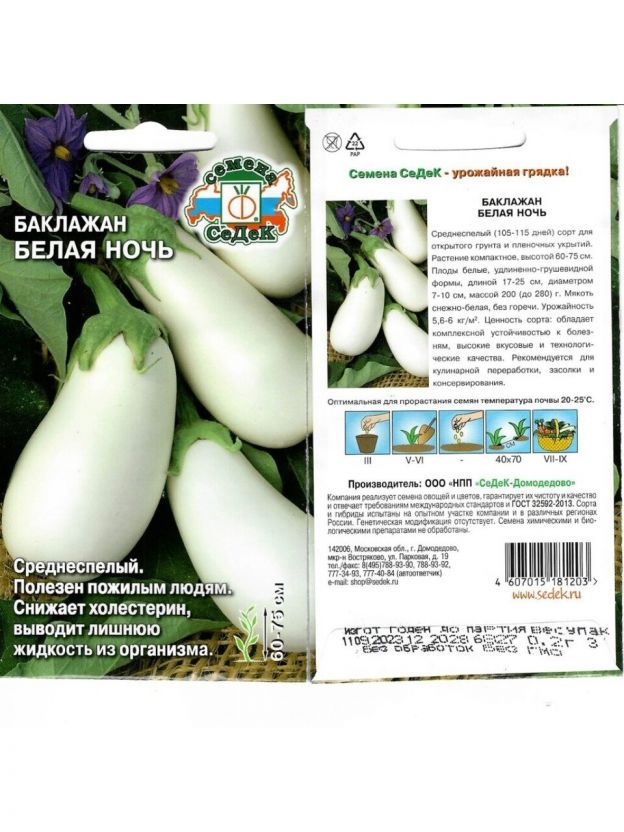 Семена Баклажан, Белая ночь, цветная упаковка, Седек