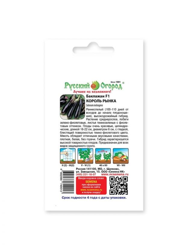 Семена Баклажан, Король рынка F1, цветная упаковка, Русский огород