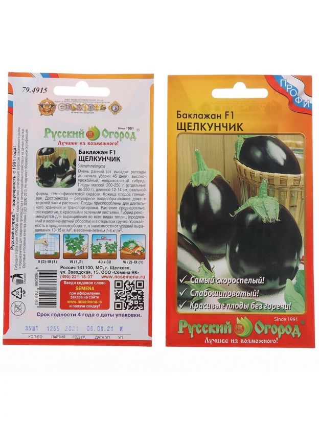 Семена Баклажан, Щелкунчик F1, цветная упаковка, Русский огород