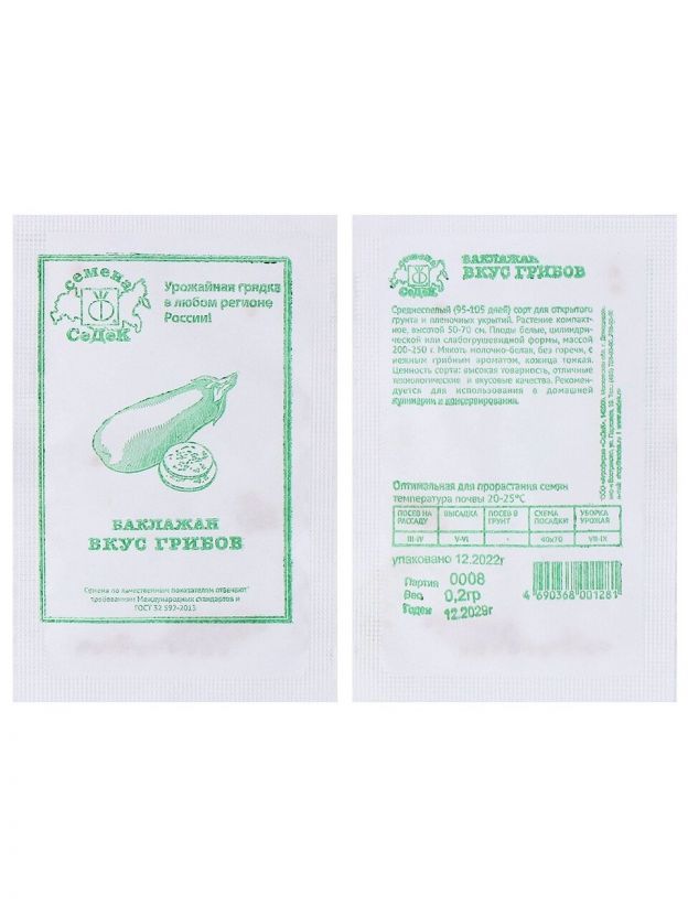 Семена Баклажан, Вкус грибов, 0.2 г, белая упаковка, Седек