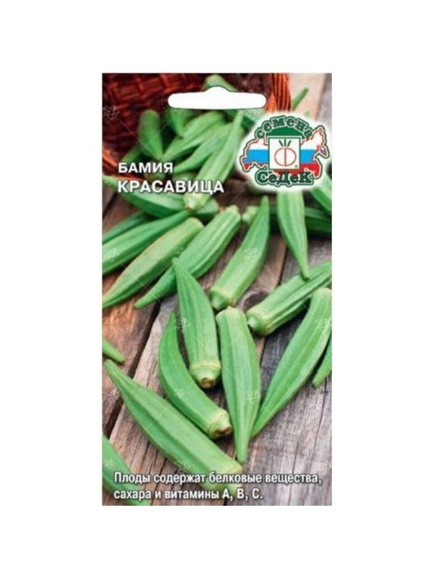 Семена бамии Красавица в цветной упаковке от Седек: среднеспелый урожай для дачи и дома, свежесть вкуса и простота выращивания.