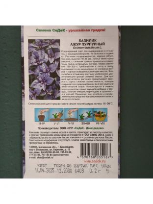 Семена Базилик, Ажур Пурпурный, цветная упаковка, Седек