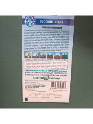 Семена Базилик, Русский гигант, 0.1 г, Русский богатырь, фиолетовый, цветная упаковка, Гавриш