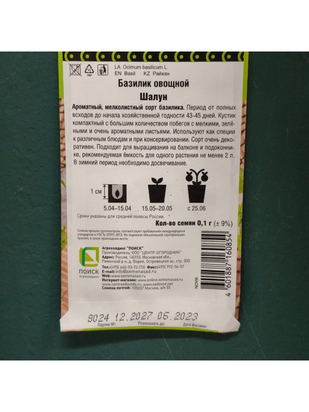 Семена Базилик, Шалун, 0.1 г, овощные, цветная упаковка, Поиск