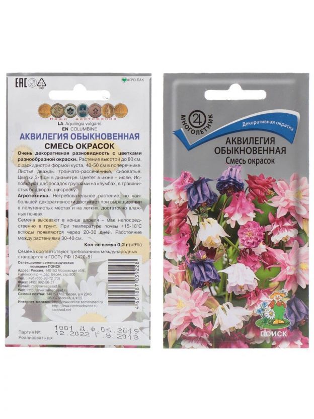 Семена Цветы, Аквилегия, Обыкновенная, 0.2 г, смесь окрасок, цветная упаковка, Поиск