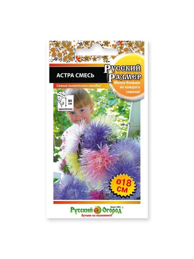 Семена Цветы, Астра, 0.3 г, Русский размер, I, смесь, цветная упаковка, Русский огород