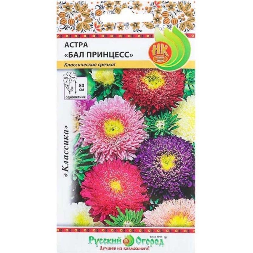 Семена Цветы, Астра, Бал принцесс, 0.3 г, смесь, цветная упаковка, Русский огород