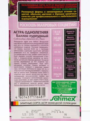 Как использовать семена астры Баллон пурпурный? Их можно высевать в открытый грунт или на рассаду, а затем пересаживать в вазоны, горшки или на клумбы. Благодаря российскому происхождению семена хорошо адаптированы к местному климату и дают дружные всходы даже при переменчивой погоде.