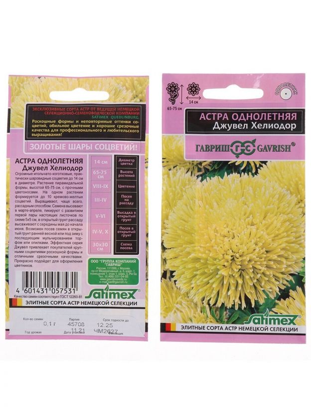 Семена Цветы, Астра, Джувел Хелиодор , 0.05 г, Эксклюзив, однолетняя, игольчато-коготковая, цветная упаковка, Гавриш