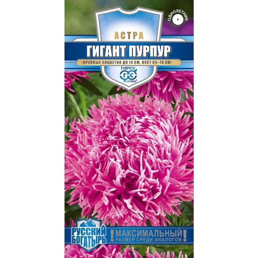 Семена Цветы, Астра, Гигант пурпур, 0.1 г, Русский богатырь, цветная упаковка, Гавриш