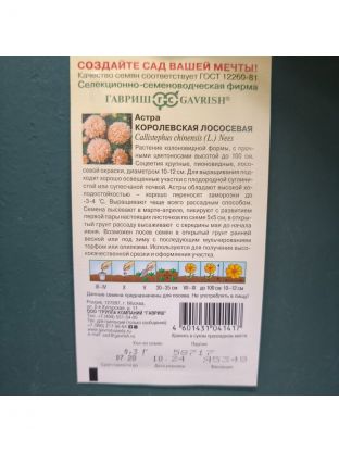 Семена Цветы, Астра, Королевская, 0.3 г, лососевая,однолетняя, пионовидная, цветная упаковка, Гавриш