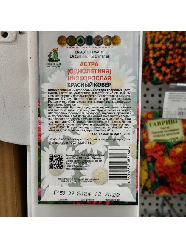 Семена Цветы, Астра, Красный ковер, 0.2 г, низкорослая, цветная упаковка, Поиск