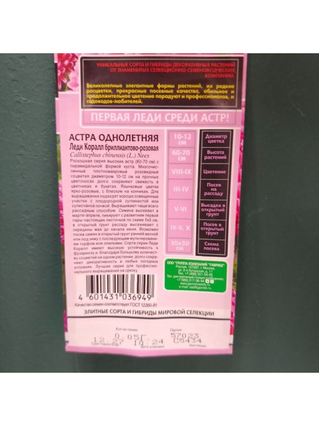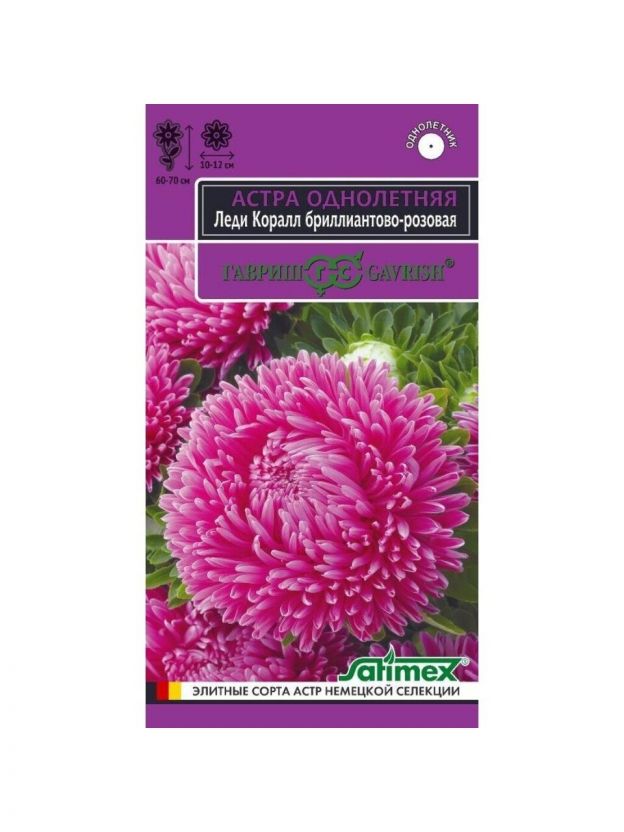 Семена Цветы, Астра, Леди Корал, 0.1 г, Эксклюзив, цветная упаковка