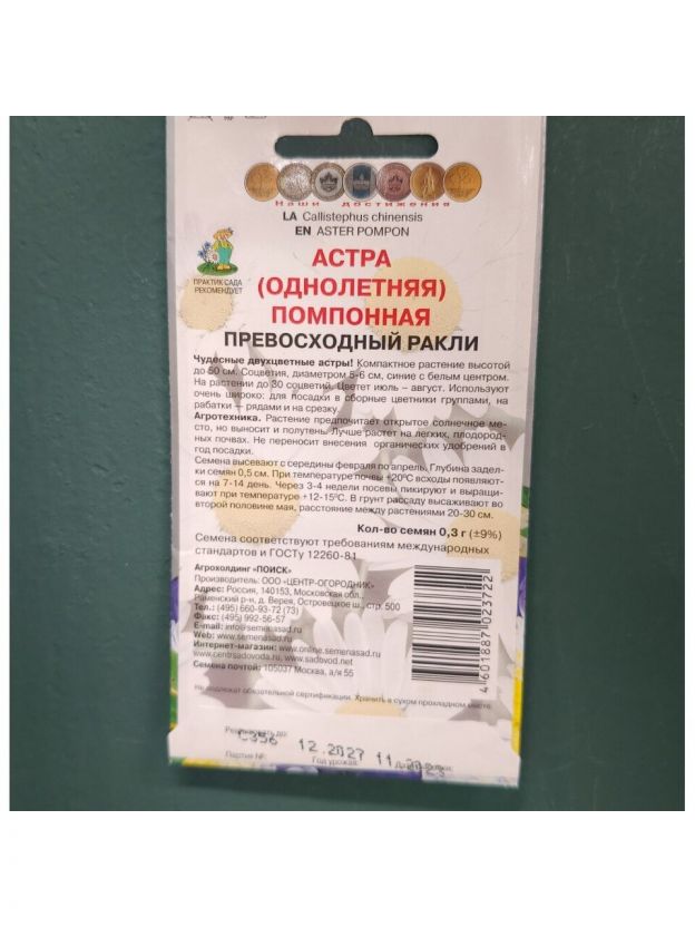 Семена Цветы, Астра, Превосходный Ракли, 0.3 г, цветная упаковка, Поиск