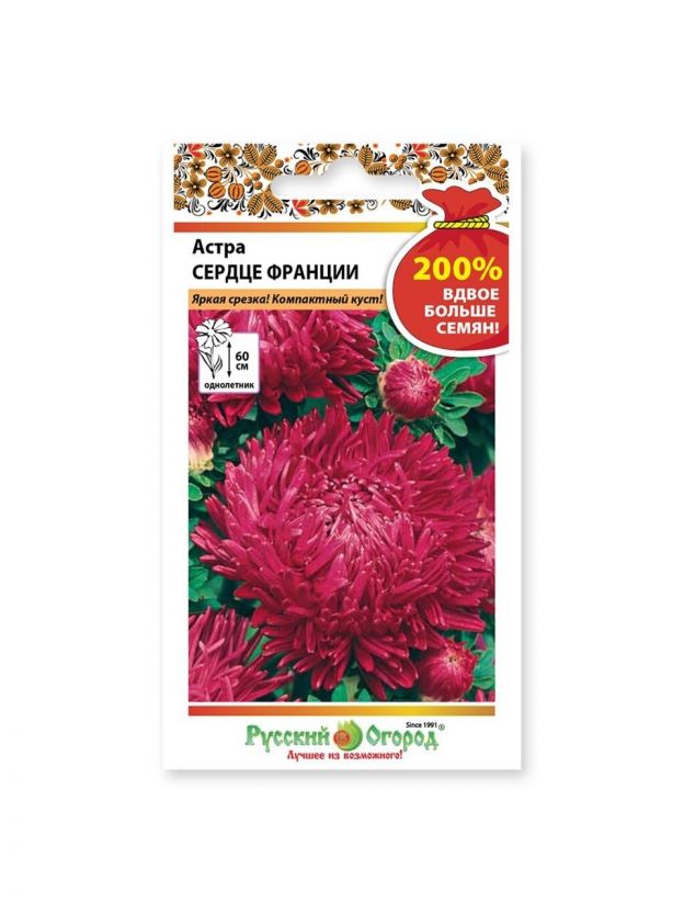 Семена Цветы, Астра, Сердце Франции, 0.5 г, 200%, Русский огород