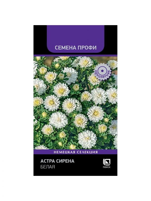 Семена Цветы, Астра, Сирена Белая, 0.05 г, цветная упаковка, Поиск