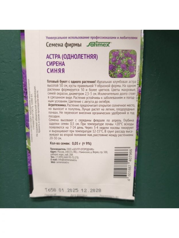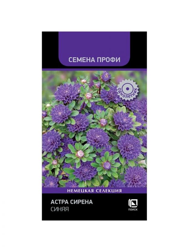Семена Цветы, Астра, Сирена Синяя, 0.05 г, цветная упаковка, Поиск